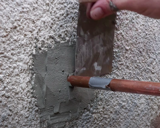 The following morning I could remove the pipe, fine tune the opening with a countersink and masonry drill bit and the repair was complete.